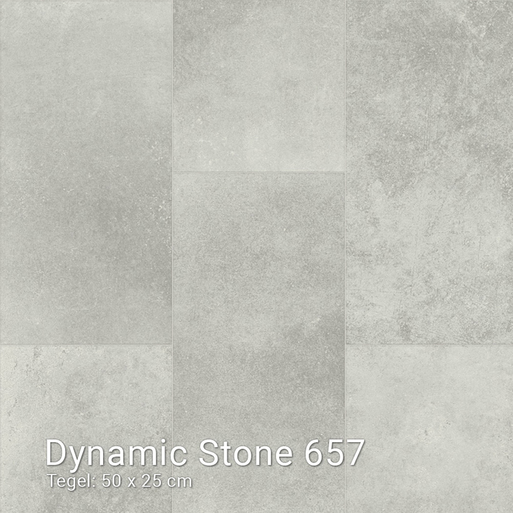 Dynamic Stone is een hoogwaardige PVC-vinylvloer met de realistische uitstraling van natuursteen, terrazzo, marmer, beton of kiezel, en dat alles met het comfort van vinyl. Deze kamerbrede vloer wordt geleverd op een rol van 400 cm breed, waardoor je een strak, naadloos resultaat krijgt, zelfs in grote ruimtes.