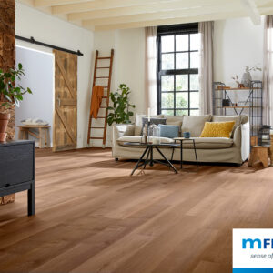 mFLOR pvc vloer Bramber Chestnut – heeft een elegant design met lange, brede planken. De vloer past perfect in iedere omgeving, of het nu hedendaags- of traditioneel is ingericht.